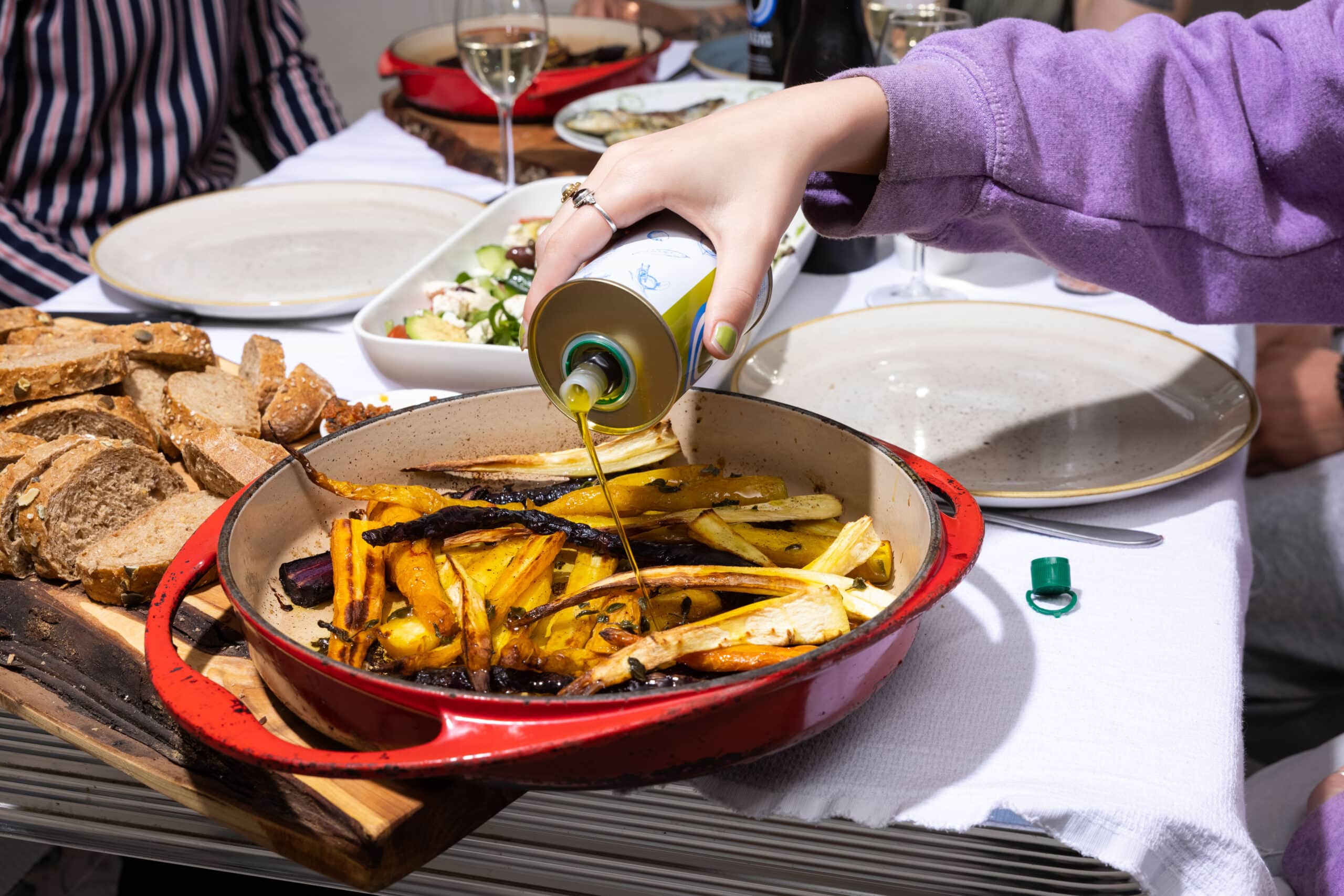 Absolutely! Our extra virgin olive oil is safe to heat up to 207°C. In fact, you’ll even enjoy the health benefits of extra virgin olive oil while cooking with it.