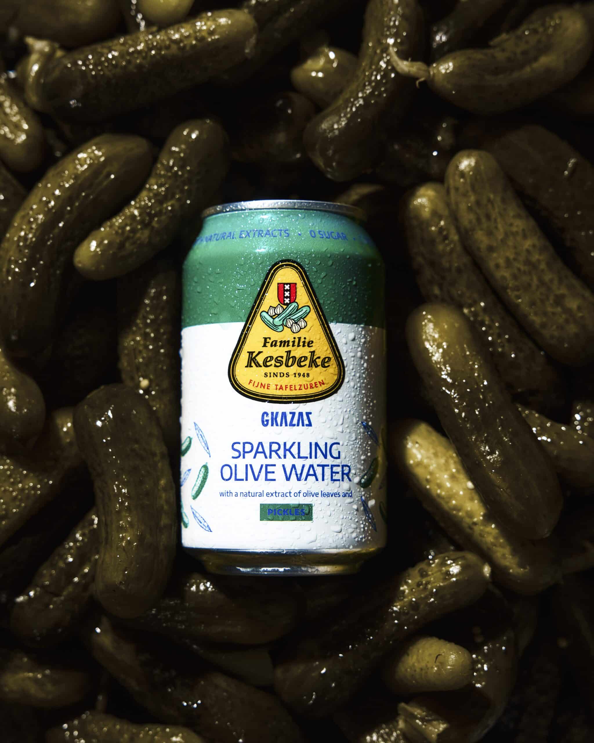 Our own olive leaves meet Amsterdam’s iconic pickle. A bold collaboration between Gkazas and Kesbeke. We combine the famous pickle brine with naturally distilled cucumber extract and our own olive leaves. The result: a layered, savoury soda with no sugar and full of character.